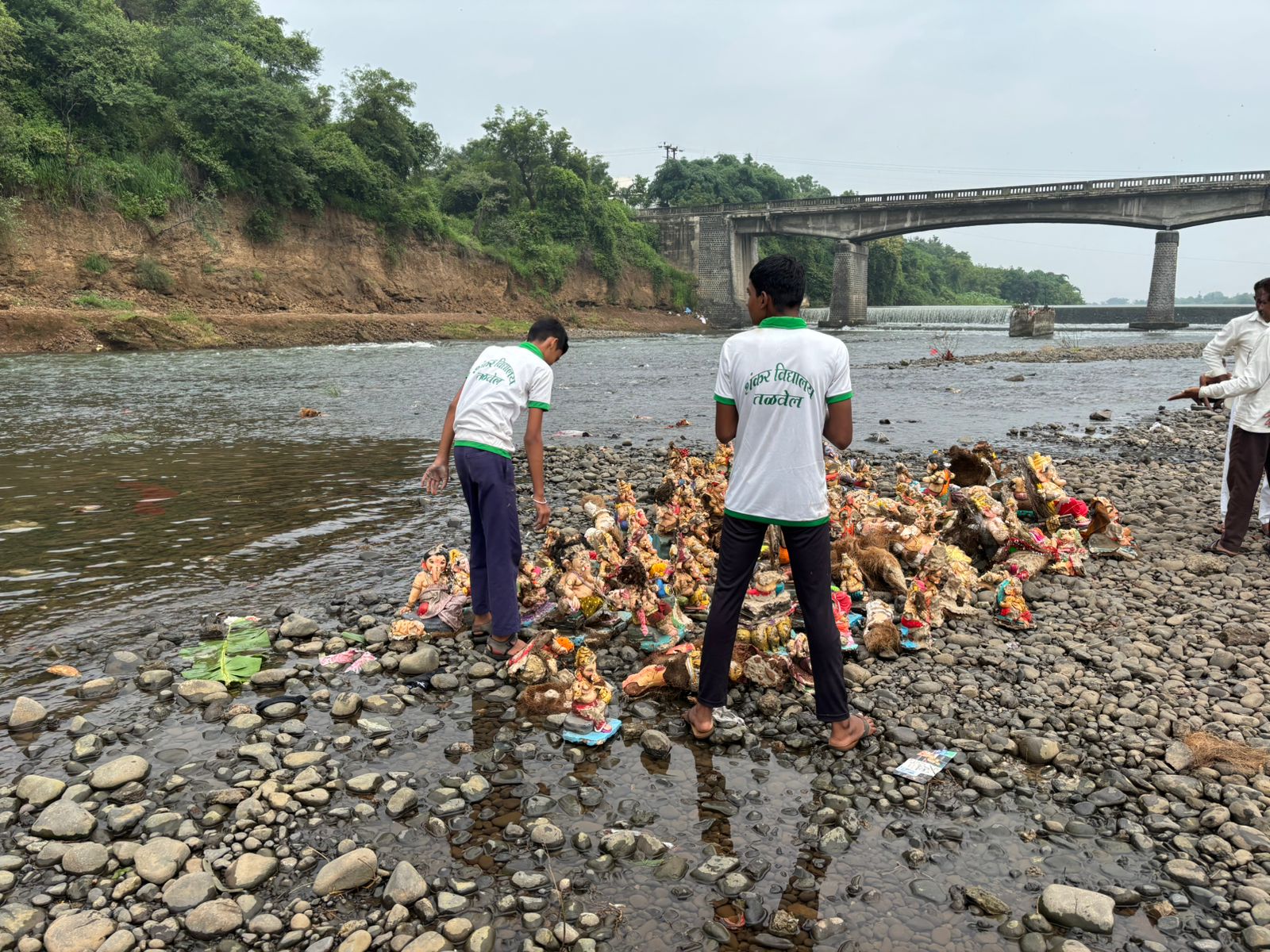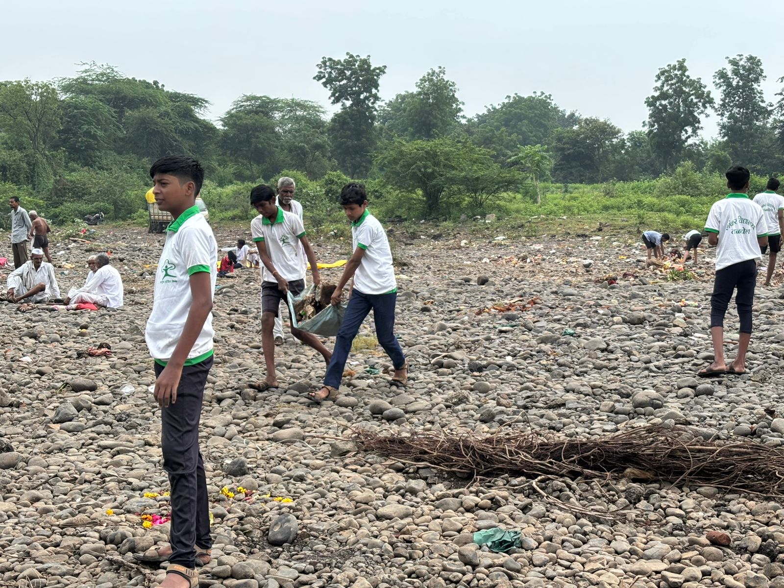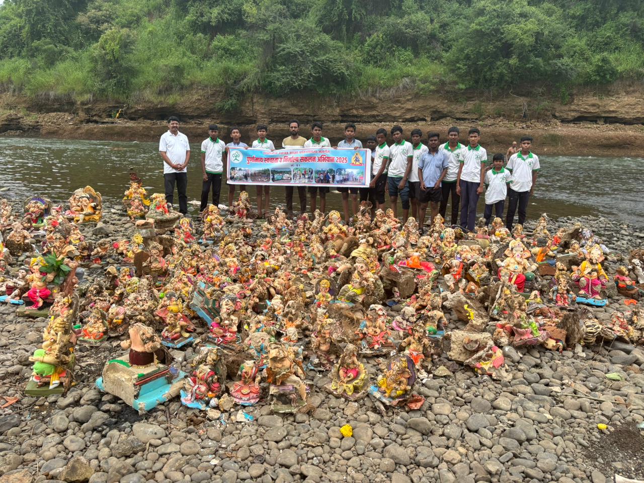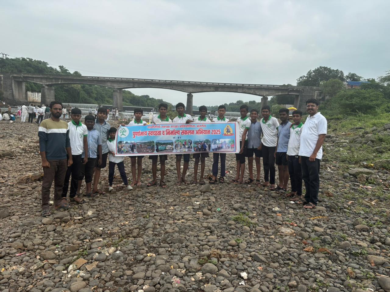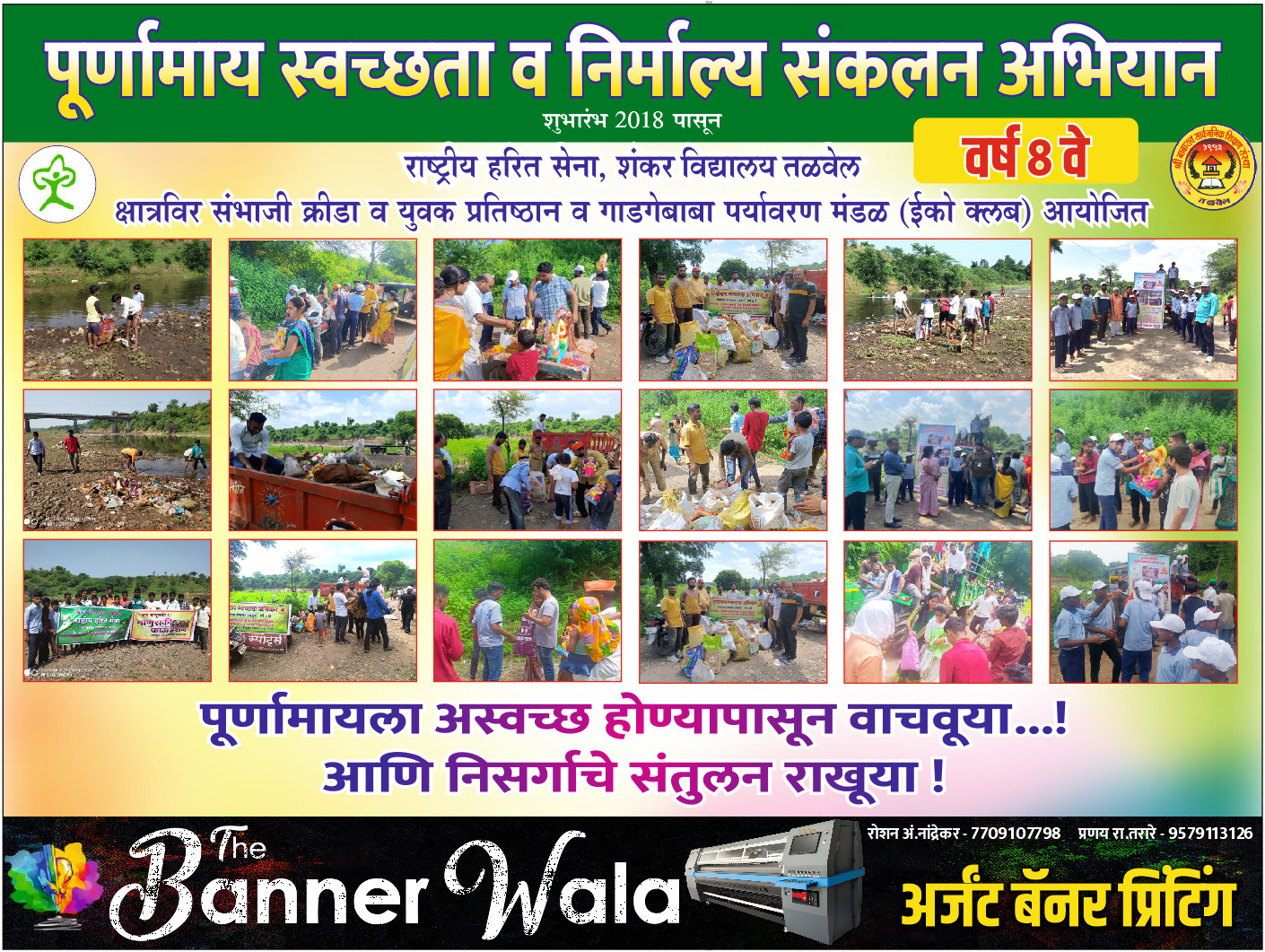 राष्ट्रीय हरित सेना शंकर विद्यालय तळवेल क्षात्रवीर प्रतिष्ठान व शिवराई फाउंडेशन यांच्या संयुक्त विद्यमाने दरवर्षी पूर्णामाय स्वच्छता व निर्माल्य संकलन अभियानाचे आयोजन पूर्णाघाट कुरळ पूर्णा येथे करण्यात येते यावर्षी हे अभियानाचे आठवे वर्ष होते. गणेश विसर्जन झाल्यानंतर यावर्षी पूर्णाघाट पूर्ण अस्वछ झाला होता.सर्वत्र अर्धवट गणेश मूर्ती विखूरल्या होत्या.त्यातील काही मूर्तिचे एकत्रीकरणं करून विसर्जन करण्यात आले.त्याचप्रमाणे स्वच्छता करण्यात आली.यावेळी उपस्थित नागरिकांनी उपक्रमाचे कौतुक केले. यावेळी या अभियानाचे आयोजन गांधी तीर्थ स्वच्छशाळा अभियाना अंतर्गत यावर्षी करण्यात आले होते.यावेळी या अभियानाचे संकल्पक तथा राष्ट्रीय हरित सेना प्रभारी डॉ तुषार देशमुख अभियान समन्वयक प्रतीक देशमुख,सदाशिव देवताळे, राष्ट्रीय हरित सेनेचे सैनिक आर्यन गेडाम,प्रेम लहाने,दीपक चाढोकार,संस्कार ओलीवकर,ईश्वर हाते,श्री इटकीकर,फरदिन शाह,अनिरुद्ध मालवे,यज्ञश मोहोड,कृष्णल मोहोड,नैतिक शिंगाडे,यश सांगोले,प्रणव चव्हाण,पियुष पवार आदी प्रामुख्याने उपस्थित होते या अभियानाला संस्थेचे अध्यक्ष राजाभाऊ देशमुख,संस्थेचे सचिव नरेंद्रराव देशमुख,सहसचिव रविराज देशमुख,मुख्याध्यापक भाष्कर काळे यांचे मार्गदर्शन मिळाले.